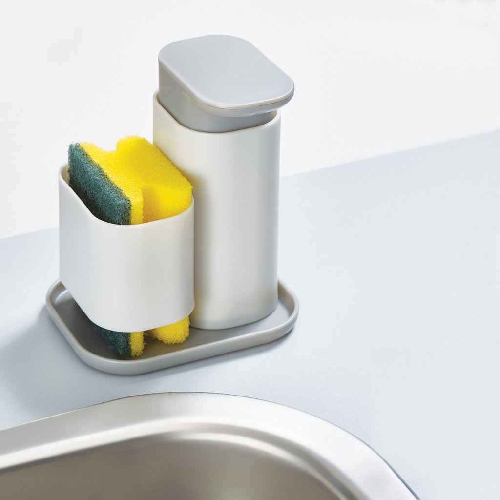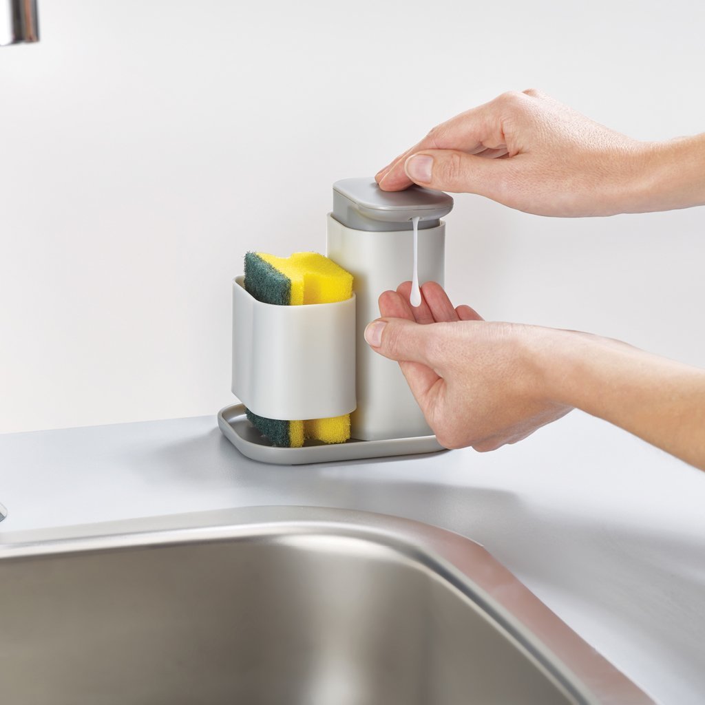 Hoidik valamu sisse ja seebi dosaator DUO 80072 240 ml, hall, Joseph Joseph