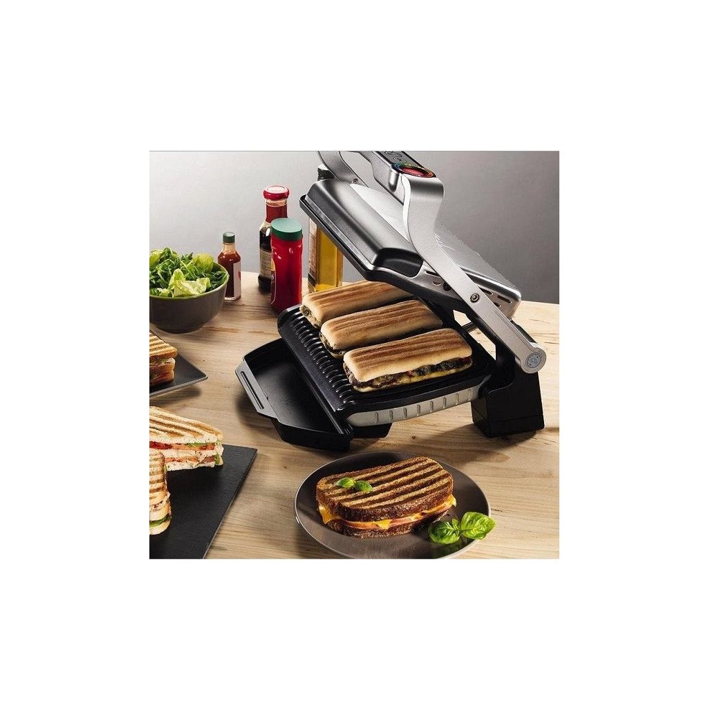 Elektrikontaktgrill GC712D34 Optigrill + INOX EE omab 600 cm2 grillpinda , mis sobib 2 kuni 4 portsjoni küpsetamiseks. See on varustatud spetsiaalse automaatse anduriga, mis reguleerib temperatuuri ja grillimisaega vastavalt grillitava toote suurusele. Kaasas on suur kauss rasva ja mahla tilgutamiseks. Kvaliteetsed grillrestid on valmistatud alumiiniumist, millel on kleepumisvastane PTFE-pind. Grillimise ajal võite igal ajal kaane tõsta ja lisada portsjoni, sulgeda kaane ja jätkata grillimist.