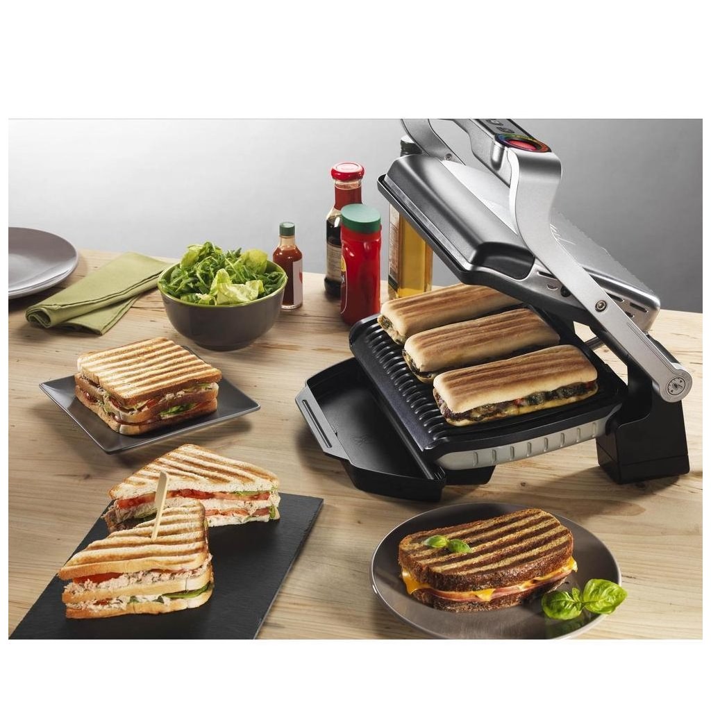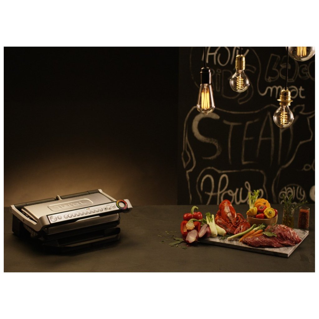 Elektriline kontaktgrill GC722D34 Optigrill+ XL on 33% võrra suurem grillpind, mille suurus on 800 cm2 ja mis sobib 6-8 portsjoni küpsetamiseks. See on varustatud spetsiaalse automaatse anduriga, mis reguleerib temperatuuri ja grillimisaega vastavalt grillitava toote suurusele. Kaasas on suur kauss rasva ja mahla tilgutamiseks. Kvaliteetsed grillrestid on valmistatud alumiiniumist, millel on kleepumisvastane PTFE-pind. Grillimise ajal võite igal ajal kaane tõsta ja lisada portsjoni, sulgeda kaane ja jätkata grillimist.
