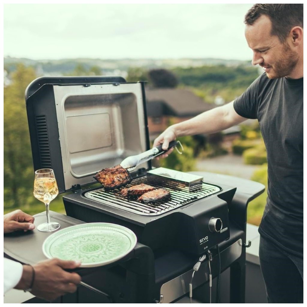 Elektriline püstitatav grill PG 8139 SEVO SMART GTS Severin, mille võimsus on 3000 W, pakub eriti kiiret kuumutamist 500 °C-ni vaid 10 minutiga. Saate seda juhtida Severin mobiilirakenduse abil, mis võimaldab teil lisaks temperatuurile määrata palju muid asju. siseruumides ja välistingimustes kasutamiseks. Sellel on kvaliteetne ja tugev terasvõrk ning eraldi raam, millel on 2 küljelaua ja hoiuriiul. SafeTouch-tehnoloogia välistab põletusohu.