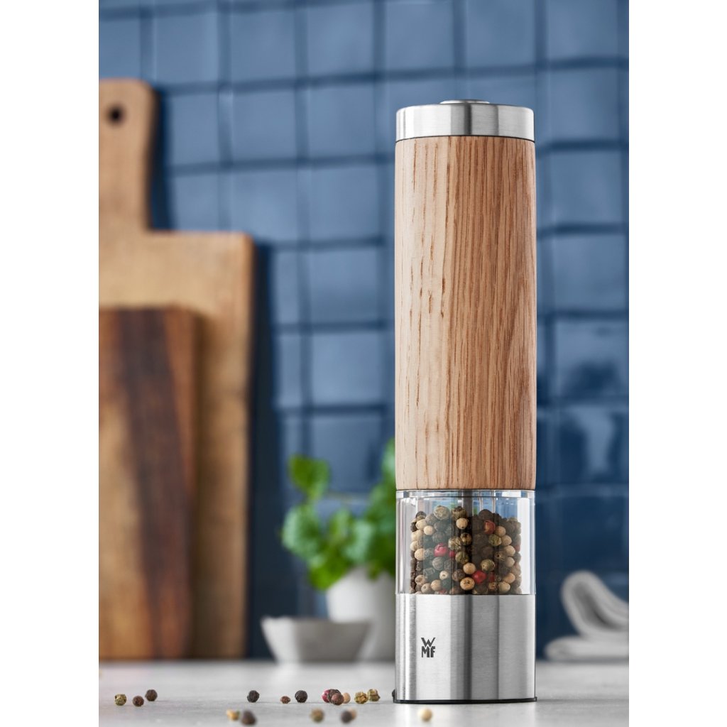 Roostevabast terasest, pleksiklaasist ja puidust elektrilise veski eksklusiivne disain paistab silma igas köögis. See on praktiline, nutikas ja kaasaegne.