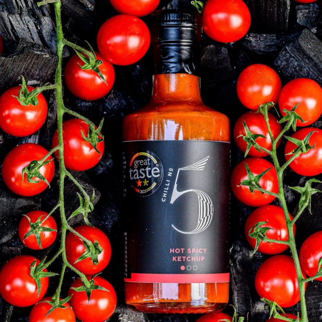 - HOT SPICY KETCHUP kaubamärgilt Chilli No5 on kergelt vürtsikas lisanditeta ketšup, mis on klassikalise ketšup moodne ja tervislik variant tšillinoodiga.