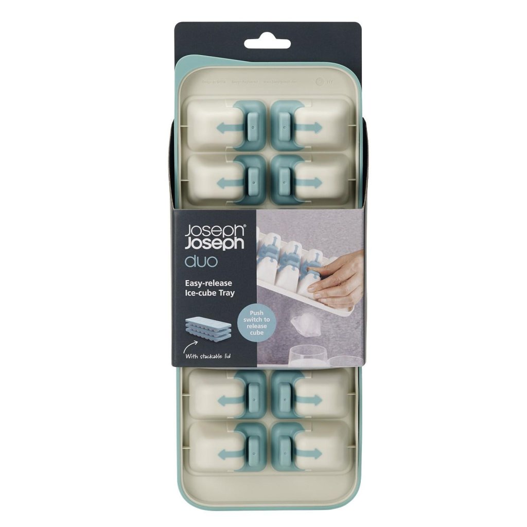 - Joseph Joseph DUO Jääkuubikuvorm kasutab patenteeritud mehhanismi üksikute kuubikute lihtsaks ja kontrollitud vabastamiseks ilma neid korraga välja puistamata.