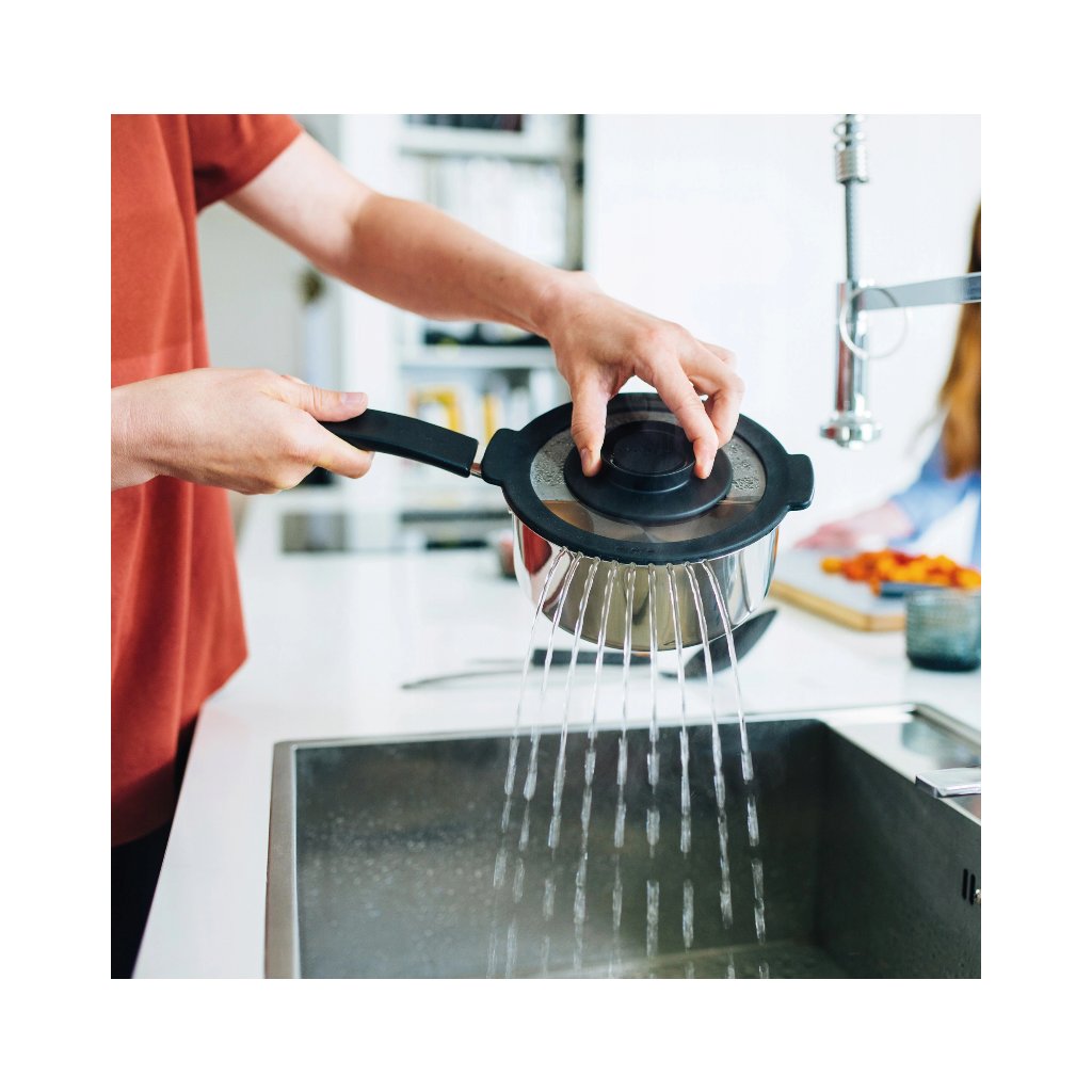 Pannu välispind on sile, mis tagab pliidi maksimaalse kaitse kriimustuste eest. Silikoonist äärisega lame karastatud klaasist kaas pakub kahte vee valamise võimalust ja lihtsat jälgimist valmistatava toidu üle, samuti auru ja keemise kontrollimist. Bakeliidist käepide jääb toiduvalmistamise ajal meeldivalt jahedaks ja tagab kindla haarde. Functional Form toidunõud on kergesti virnastatavad ja säästavad hoiuruumi.