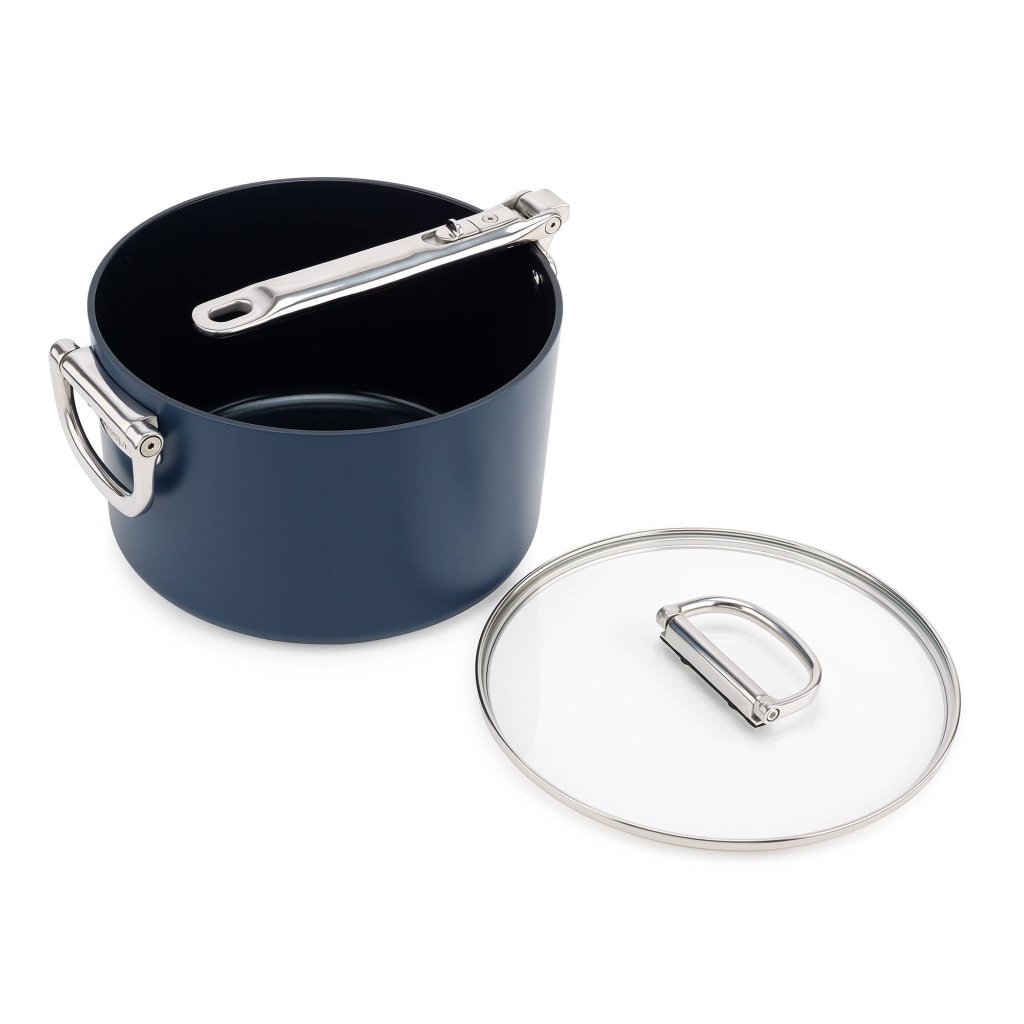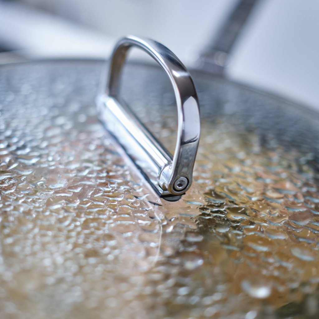 - Mõlemad käepidemed on kokkupandavad, nii et kastrul saab teiste köögiriistadega hõlpsalt virnastada ja köögikappides olevat hoiuruumi tõhusalt ära kasutada.