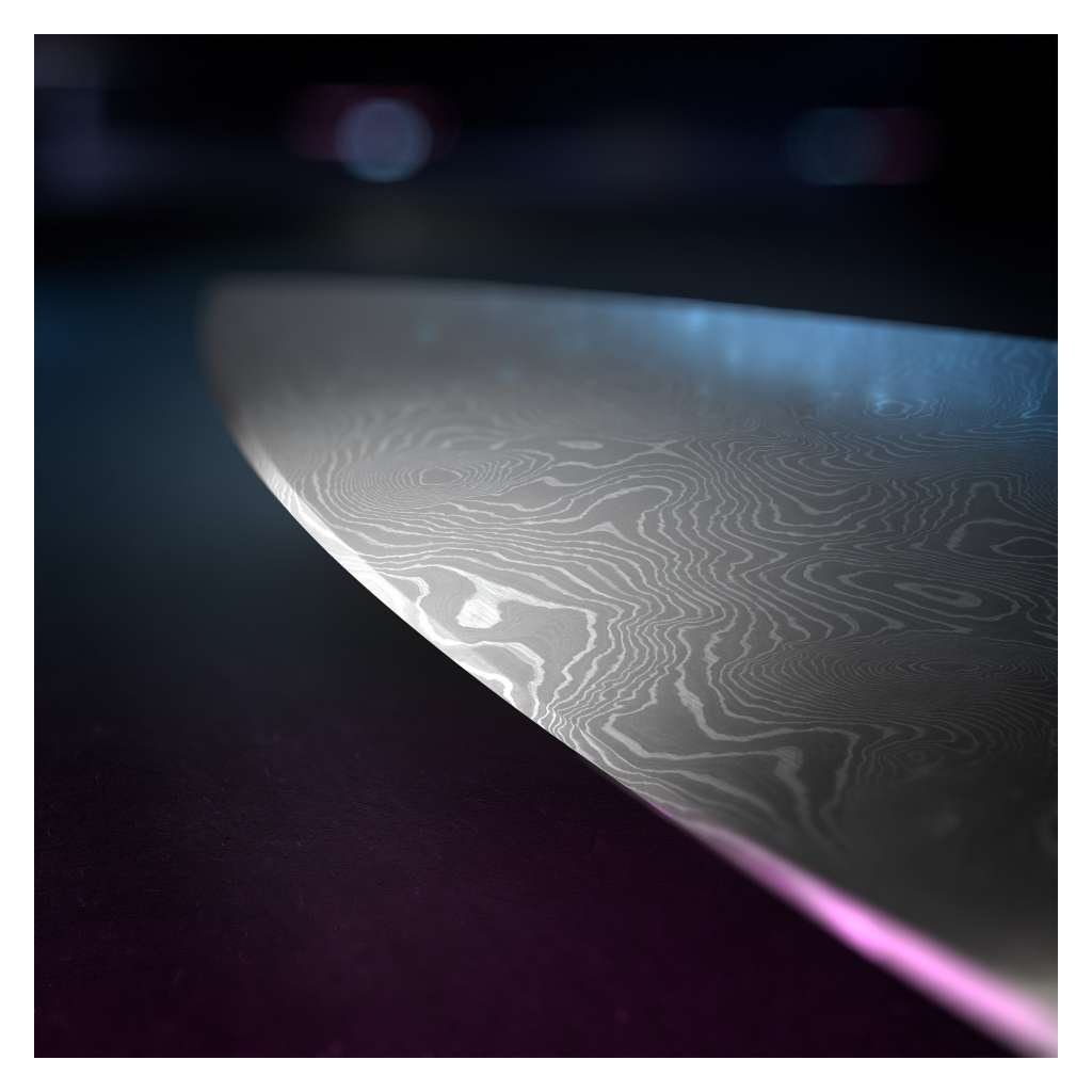 Eksklusiivne Damasteel: Käsitsi sepistatud Damasteel ühendab mitu eriterast üheks teraseteraks, mis koosneb 120 kihist. Tulemuseks on erakordne vastupidavus, püsiv teravus ja happekindel roostevabast terasest tera.