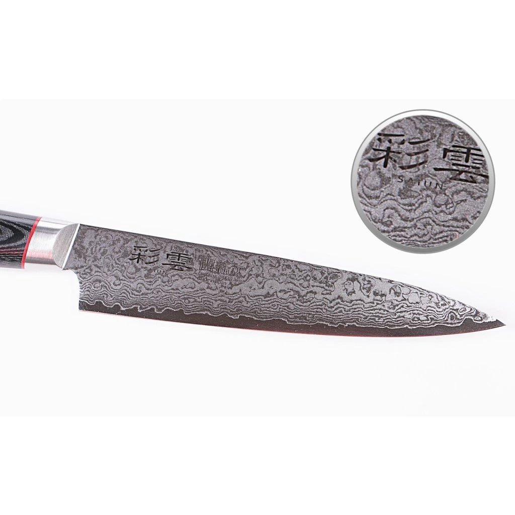 - tugev, raske ja väga terav Jaapani kokanuga, mis on valmistatud Jaapani VG-10 Damaskuse terasest muljetavaldava disaini ja kõrgeima kvaliteediga