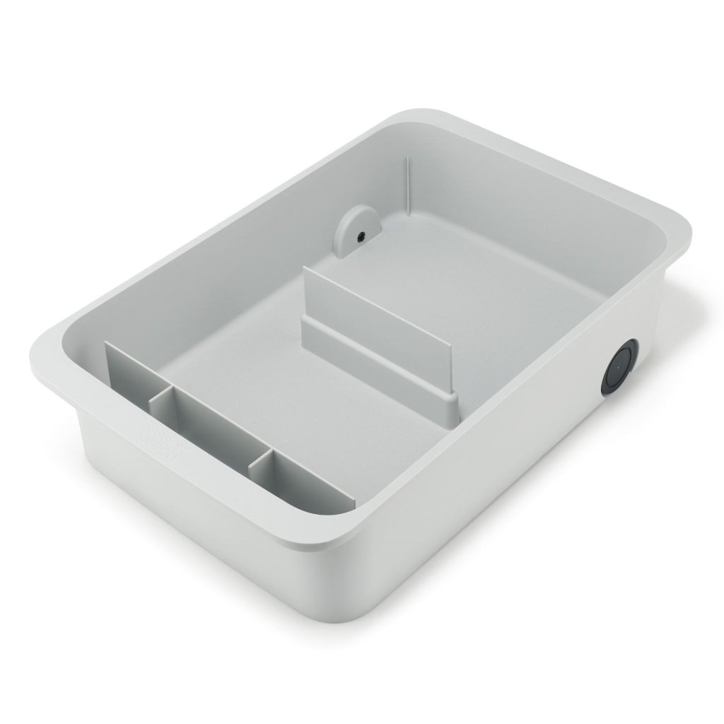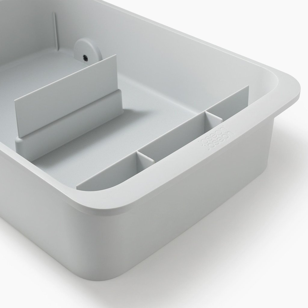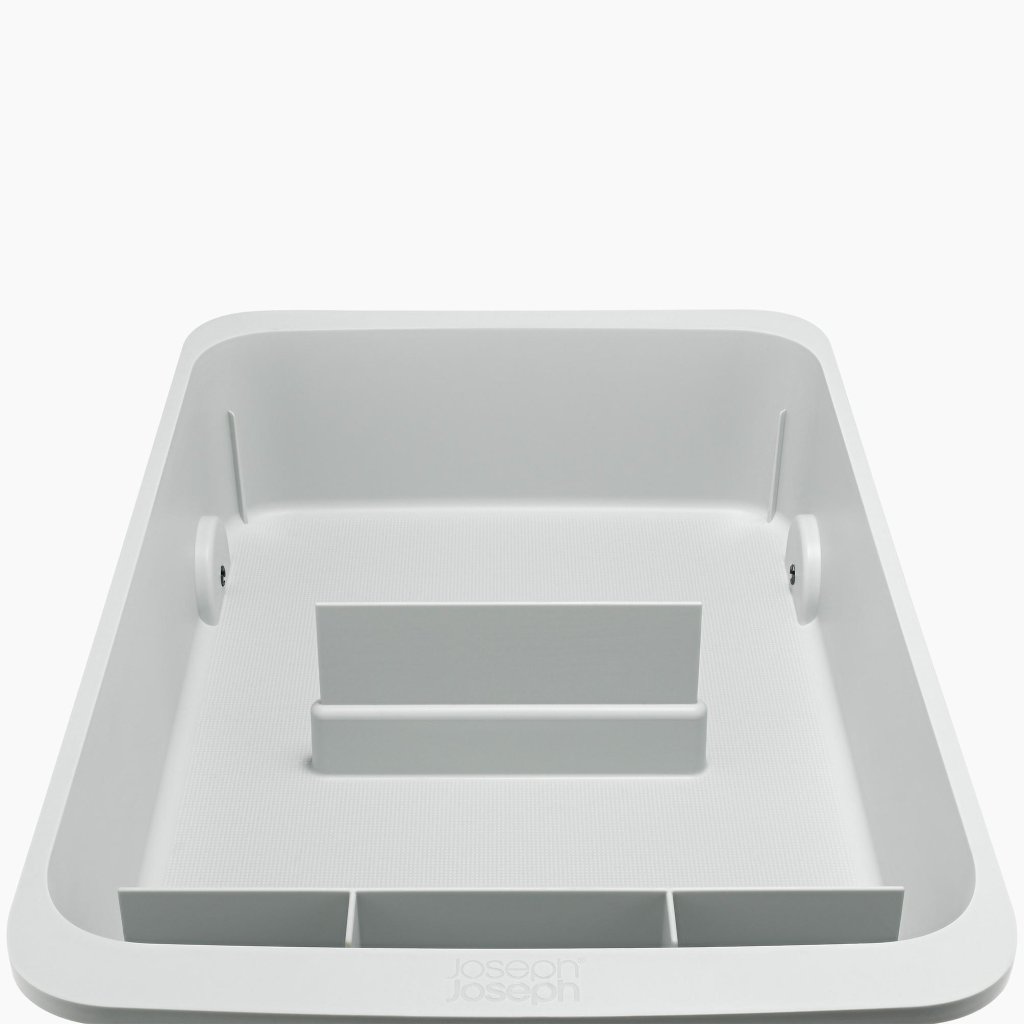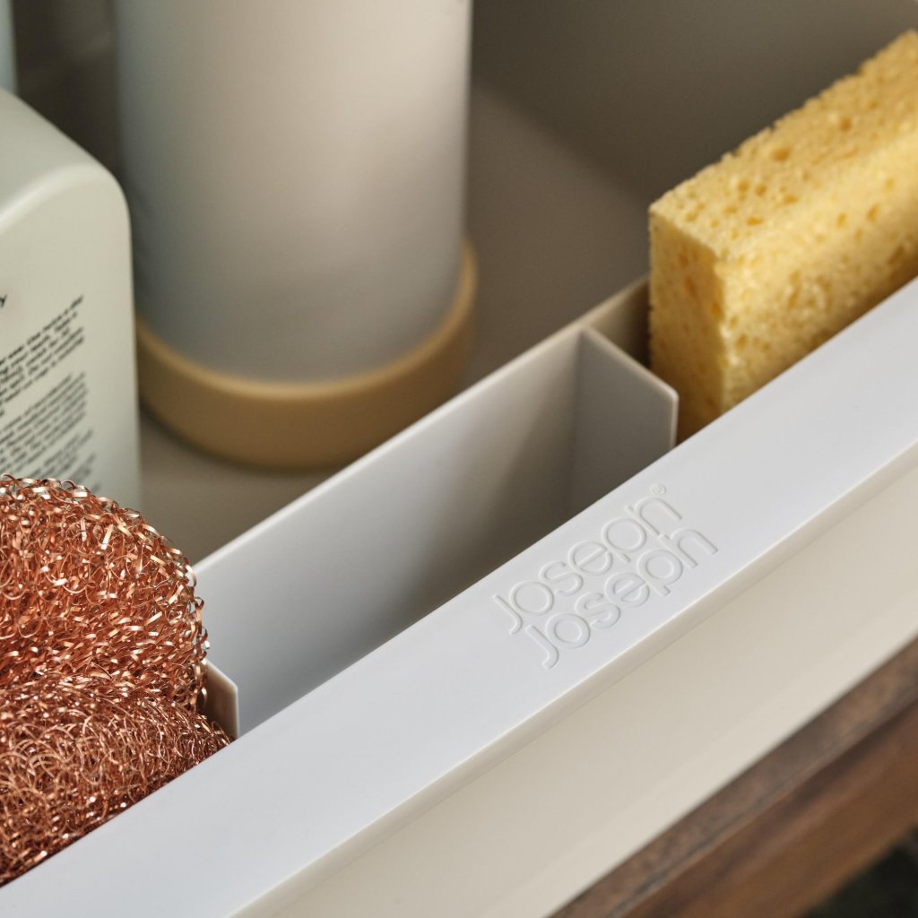 - Suur Joseph Joseph CUPBOARDSTORE korraldaja pakub selget süsteemi puhastusvahendite hoiustamiseks kraanikausi all olevas kapis ja aitab hoida kõiki puhastusvahendeid ühes kohas.