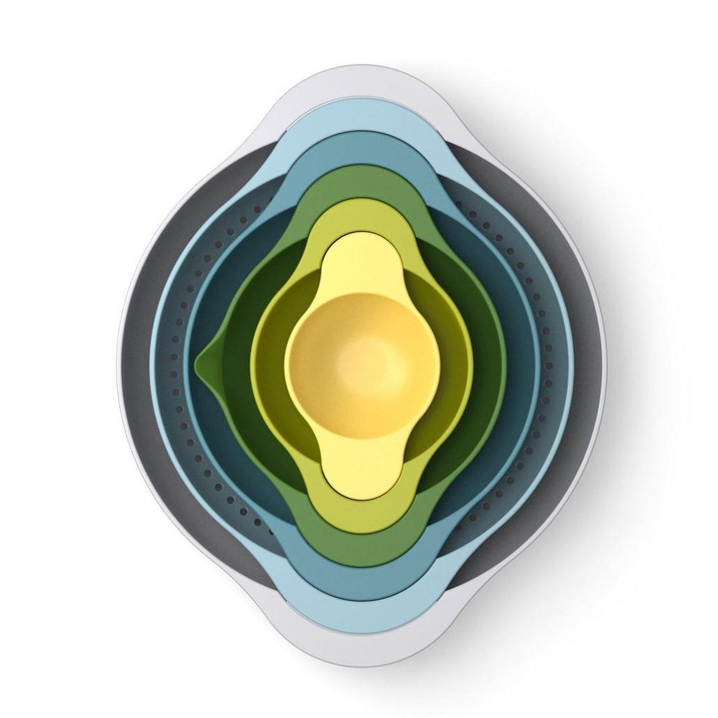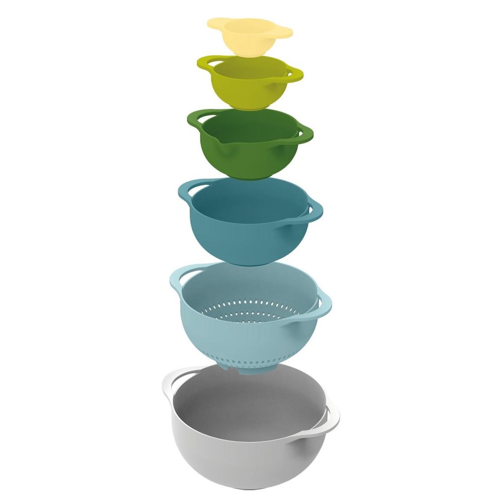 - Joseph Joseph DUO OPAL kuueosaline kompaktne köögitarvikute komplekt pakub praktilist lahendust koostisosade valmistamiseks, taigna segamiseks ja toiduainete kurnamiseks ühes ruumisäästvas komplektis.