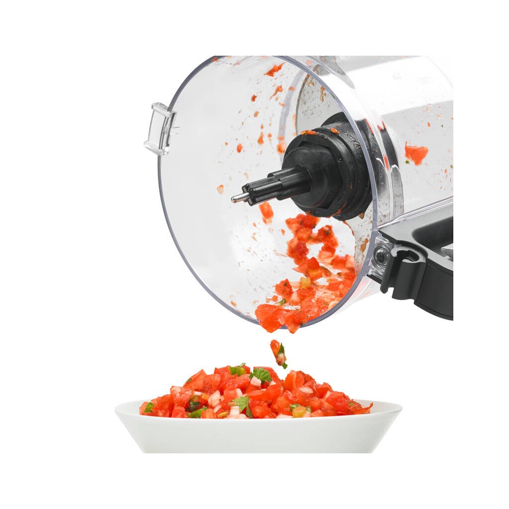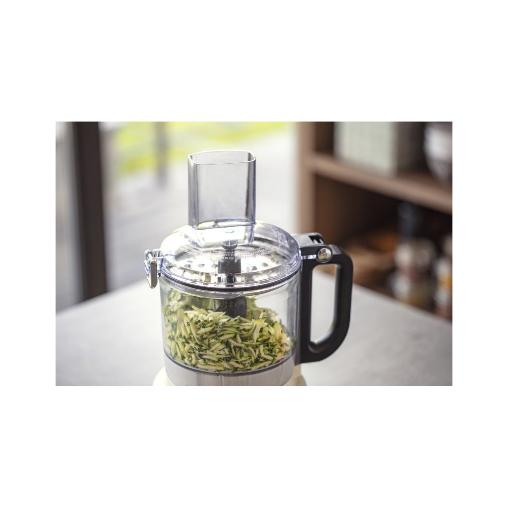 - standardtarvikud: universaalne nuga, tainasõtkur, reguleeritav lõikekettas 4 mm viiludele, lõikekettas 6 mm viiludele, BPA-vaba kauss 1,7 l ajamitormiga, hingedega kaas koos 2-in-1 täitetoruga ja kaheosaline tõukuri lisa, ajamiadapter