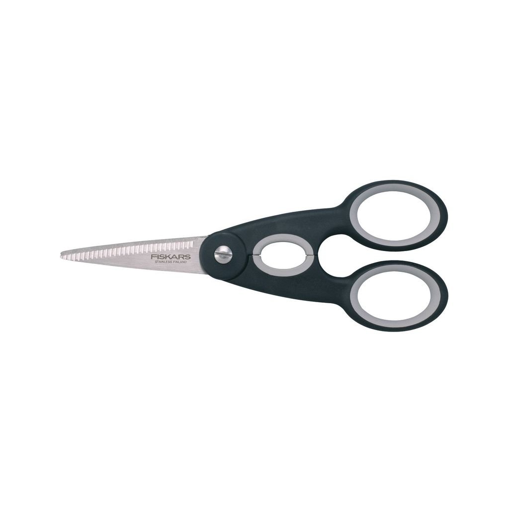 Need FISKARSi köögikäärid üllatavad teid oma funktsionaalsuse ja teravate teradega. Need on valmistatud kvaliteetsest niklivabast terasest. Ergonoomiliselt kujundatud käepidemed on maksimaalselt kohandatud käe kujule, et neid oleks lihtne ja mugav käsitseda. Need on kujundatud nii, et sõrmede surve jaotub ühtlaselt käepideme pinnale ja kääride käsitsemisel ei teki ebameeldivaid villid. Käepidemed on vormitud otse terade külge, mis annab kääridele täiusliku tugevuse ja pikaajalise vastupidavuse isegi sagedase kasutamise korral. Ükski majapidamine ei saa ilma nende käärideta hakkama!
