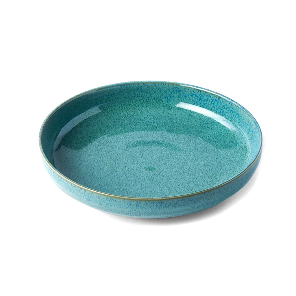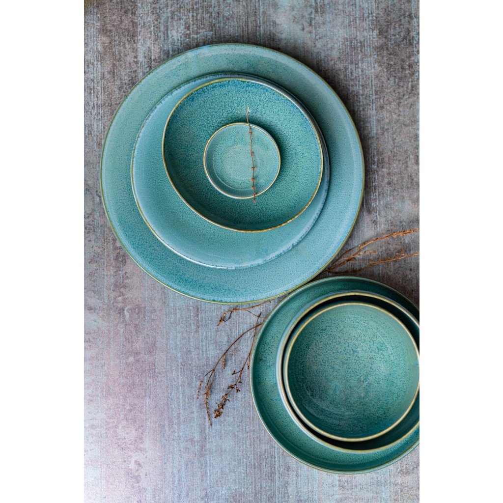 Selles pakendis on originaalne kõrge äärega taldrik kollektsioonist Peacock, mille läbimõõt on 20 cm. Läikiv plaat on rohelise-sinise värvusega ja selle serval on kuldne joon.
