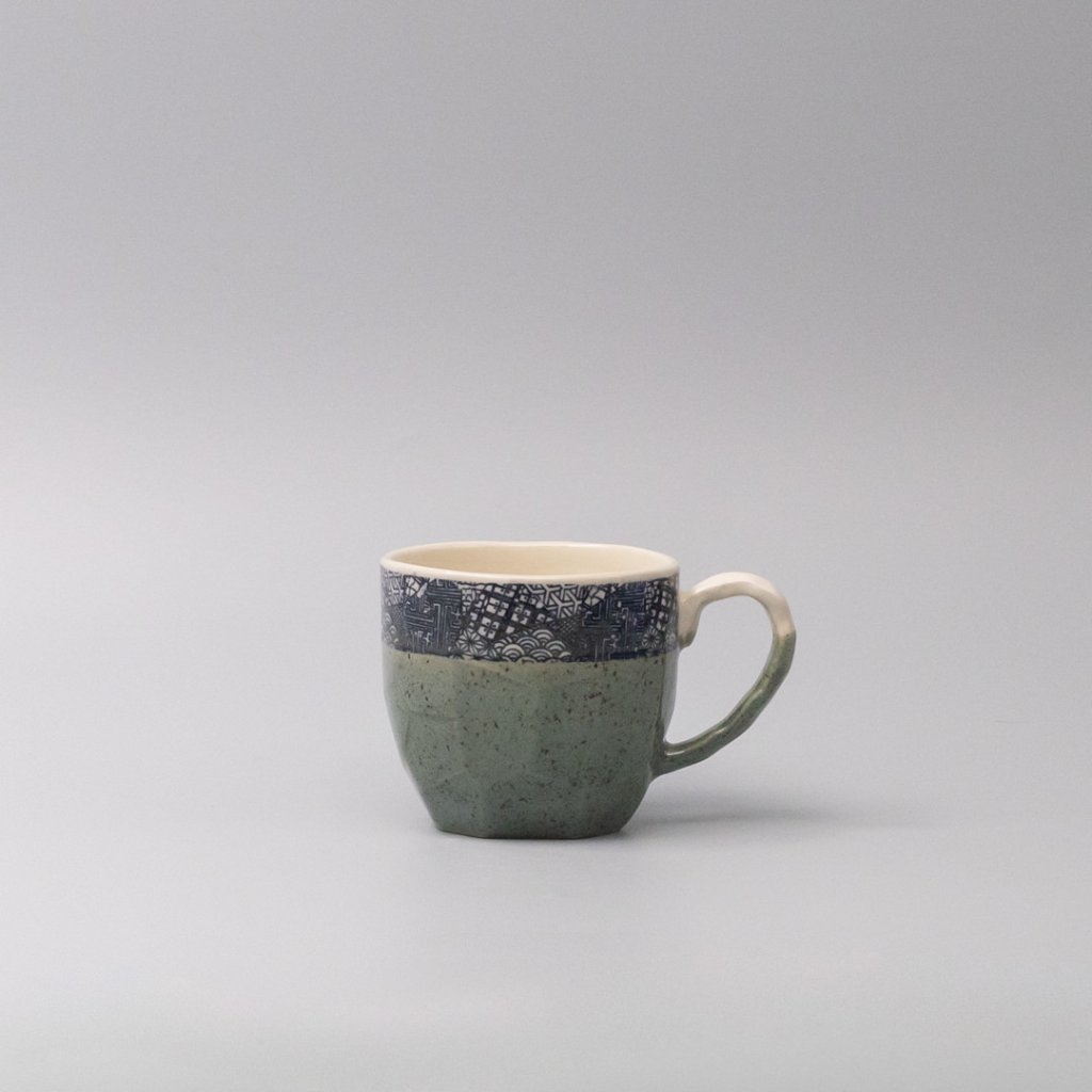 Kruus DARK GREEN WITH PATCHWORK BAND 250 ml, roheline, keraamika, MIJ