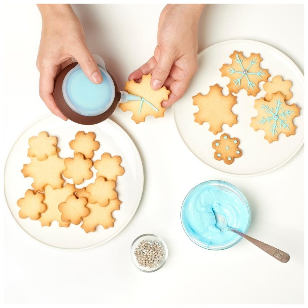 - valmistage ette lihtne küpsisetainas, kasutage seda lumehelveste küpsisevormi, kaunistage küpsised ja oletegi jõuludeks valmis