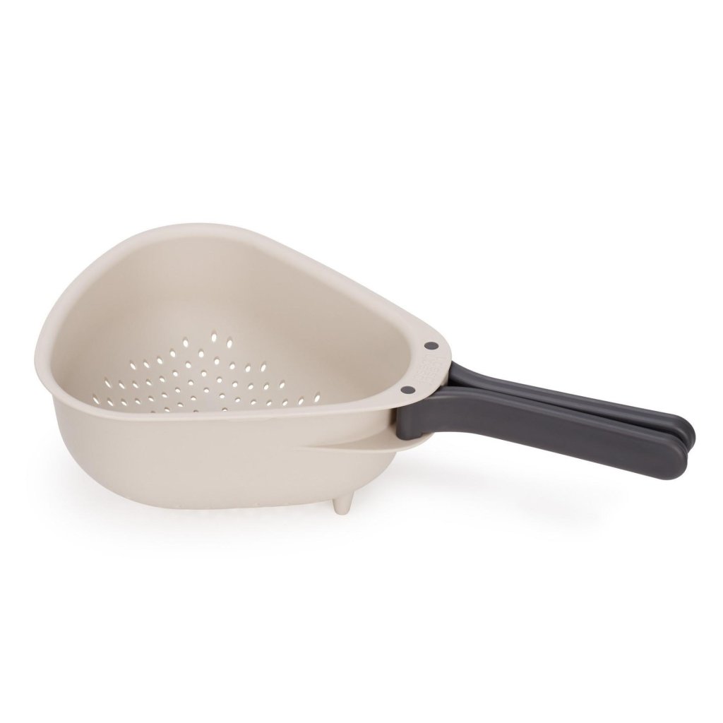 On hetki, mil sa voolate pastat ja proovite tasakaalustada kuuma keedupott kohal valamu kohal, samal ajal kui mõtlete, miks see alati tundub väikese akrobaatilise distsipliinina. See nutika kokkupandava käepidemega kurn annab teile kontrollitunde tagasi, sest see püsib stabiilselt, seda on mugav kasutada ja pärast kasutamist volditakse nii, et see ei võta poolt kapist.