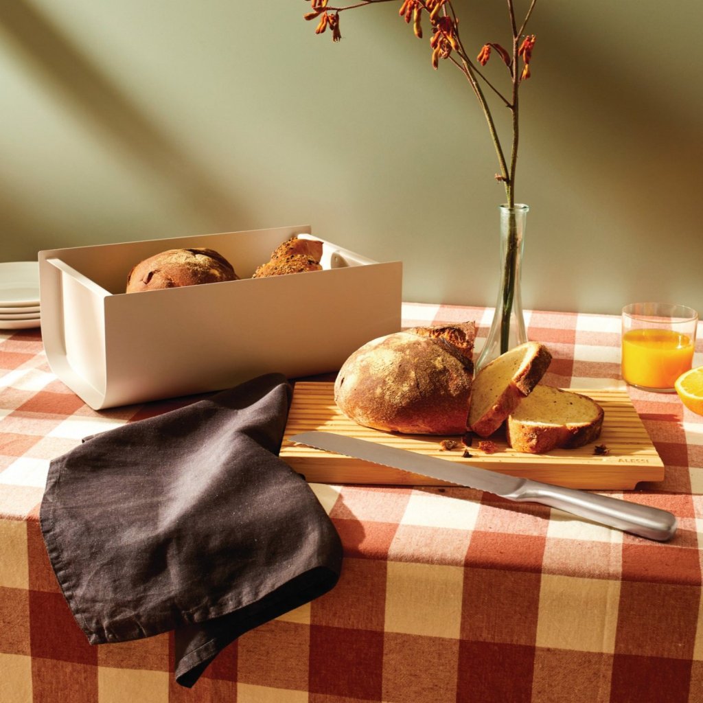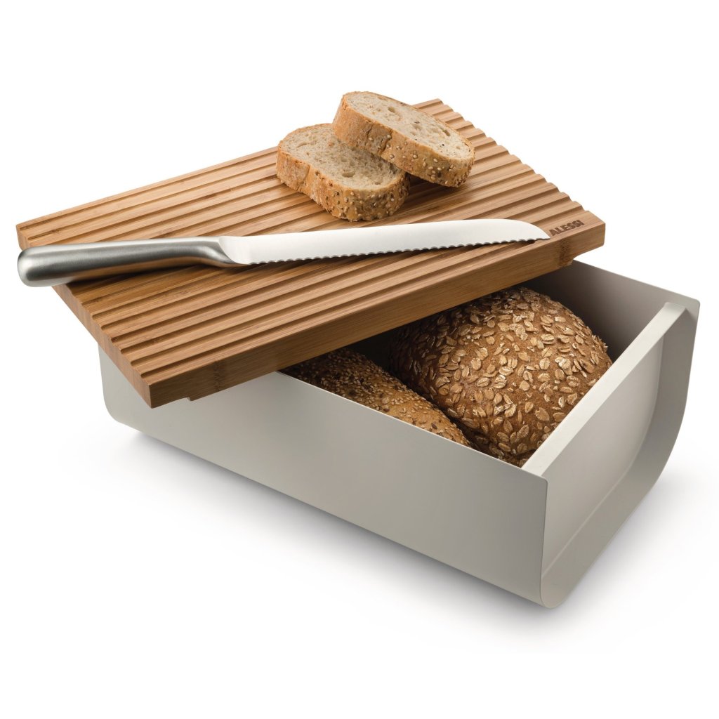 Leivakast lõikelauaga MATTINA 34 cm, hall, teras / bambus, Alessi