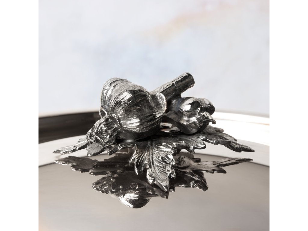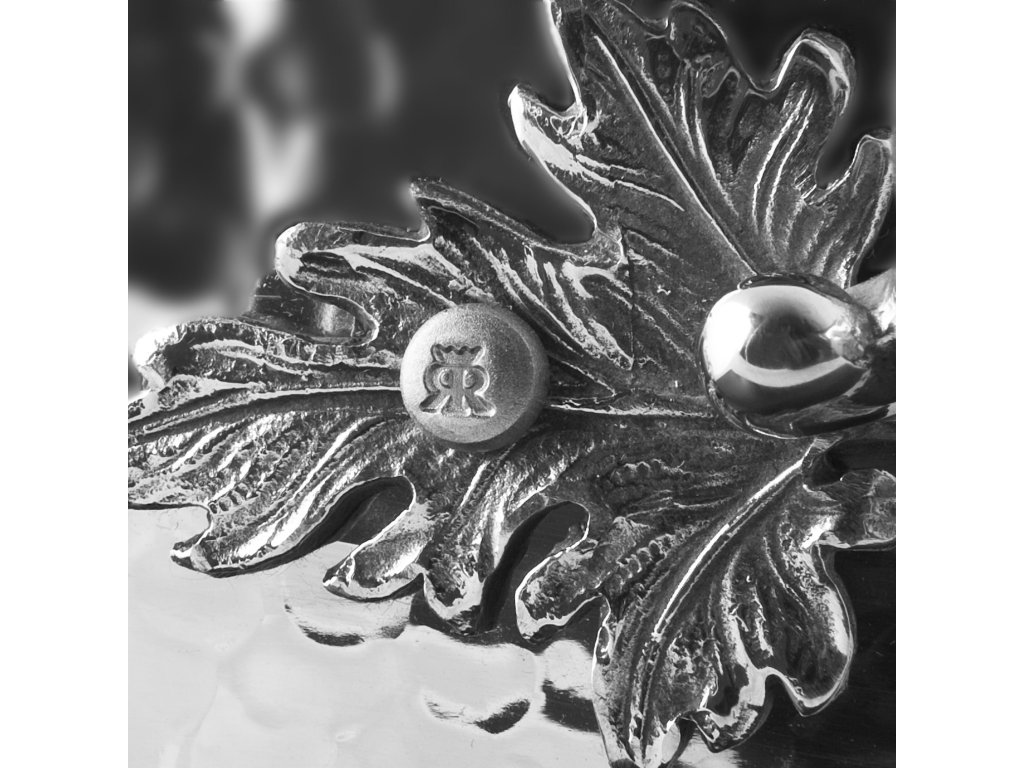 - massiivne roostevabast terasest kaas, millel on kauni dekooriga käepide, mis on käsitsi valatud massiivsest pronksist ja hõbetatud