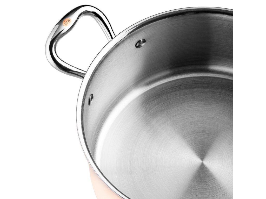 - roostevabast terasest käepidemed ja kaane käepide koos vaskseibiga jäävad toiduvalmistamise ajal jahedaks
