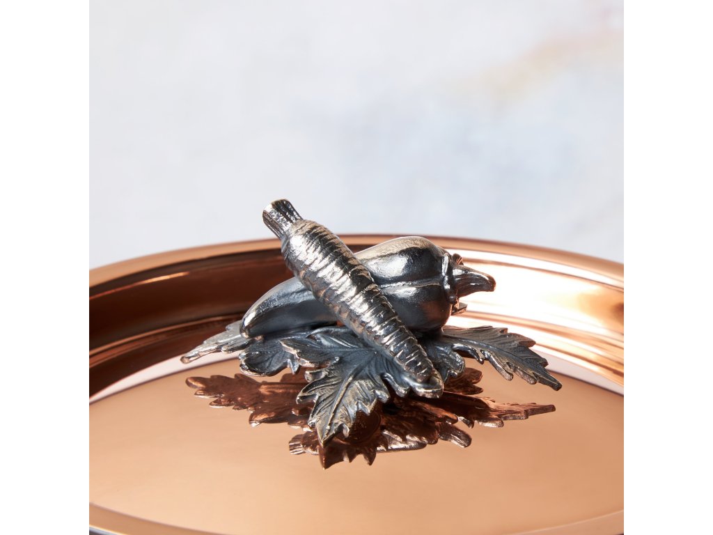 - massiivne vasest kaas, mille käepide on kaunilt kaunistatud erinevate köögiviljadega, mis on käsitsi valatud massiivsest pronksist ja hõbetatud