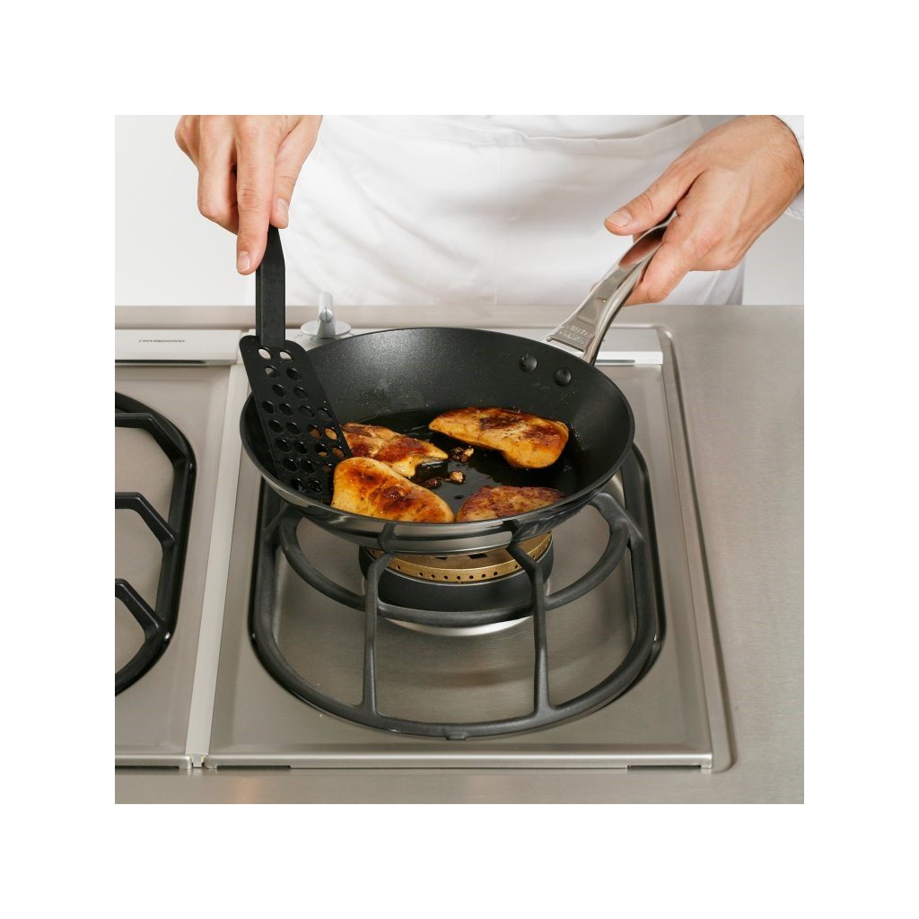 - Sobib õrnade toitude, näiteks munade, omlettide või kala valmistamiseks