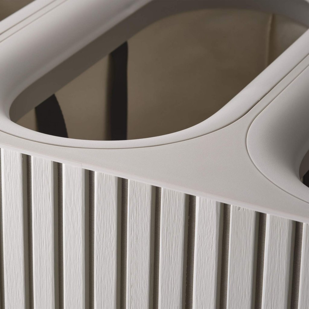 - Kompaktne ja ruumisäästev kuju võimaldab paigutada korvi ka väiksematesse ruumidesse, ilma et see rikuks interjööri üldist väljanägemist.