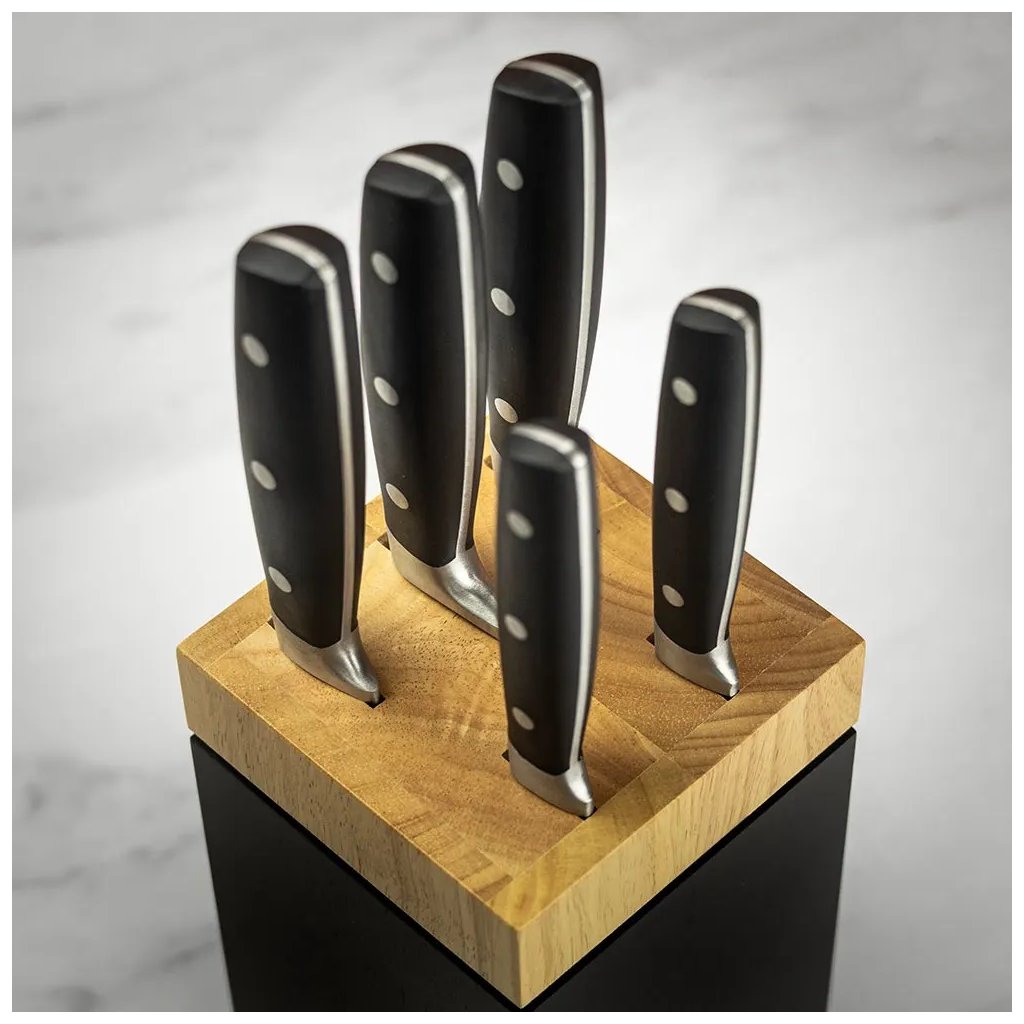 - noaplokk võimaldab teil oma noad tõhusalt hoiustada ja nende terasid kaitsta, hoides need samal ajal käeulatuses ja kasutusvalmis