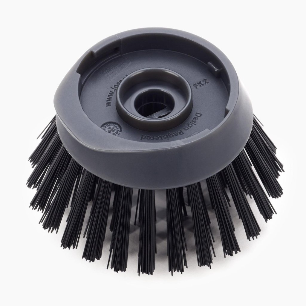 - Integreeritud kraapimisotsik harjapeal aitab kergesti eemaldada kõrbeneid jääke pannidelt, pottidelt või ahjuvormidelt ilma pinda kahjustamata.