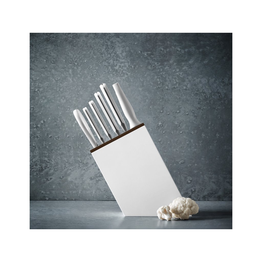 Ideaalne originaal kvaliteetsete toitude fännidele. Ideaalne noaplokk CLASSIC Valge. WÜSTHOF kujundas noaploki, mis sobib Classic White nugade välimuse ja iseloomuga. Disainitud noaplokk pakub paindlikkust Wüsthofi nugade hoidmisel. See ei ole mitte ainult köögi kujundusese, vaid ka atraktiivne kingitus. Noaplokk on saadaval Classic White sarja nugadega täidetuna. Uued valge värvikindla käepidemega Classic-mudelid täiendavad edukat WÜSTHOF Classic-nugade sarja võrreldava hinnaga. Kaasaegne söövitatud logo teral ja kolmikriips käepidemel tähistavad WÜSTHOF kvaliteeti.