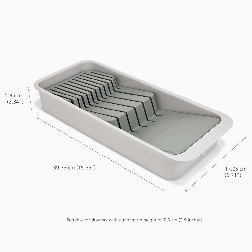- Organisaator on mõeldud sahtlitele, mille minimaalne kõrgus on 7,5 cm, sobides seega enamikku standardsetest köögimööbliliinidest.
