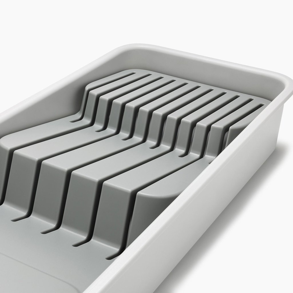- Organisaatori kompaktne kuju sobib ideaalselt väiksemate köögisahtlite jaoks, kus on vaja olemasolevat ruumi maksimaalselt ära kasutada.