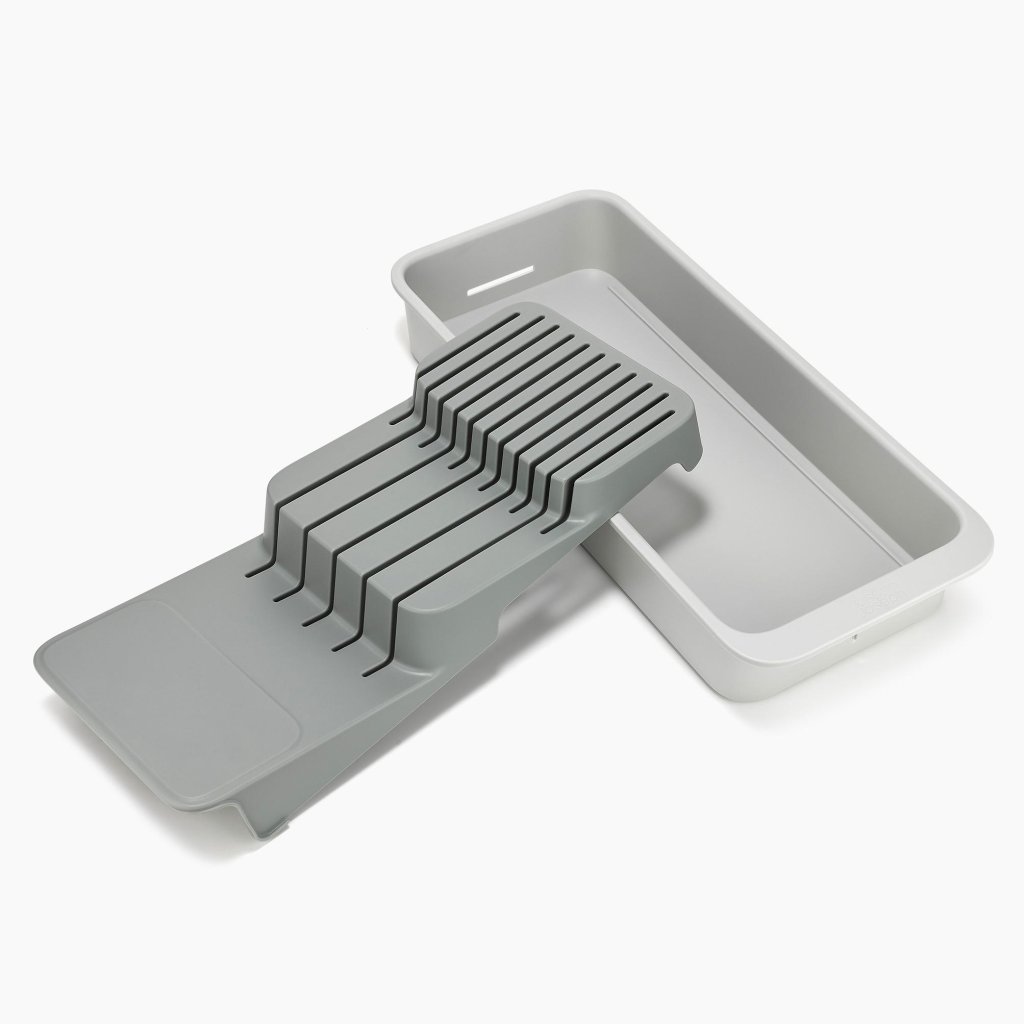 - Kompaktne noaorganisaator Joseph Joseph DRAWERSTORE võimaldab kööginoad turvaliselt otse sahtlisse paigutada.