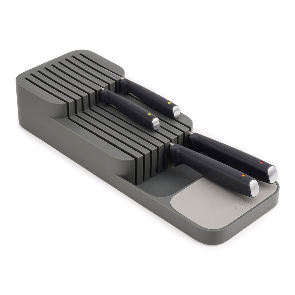 - Sahtlinugade korraldaja Joseph Joseph DUO on praktiline lahendus kööginugade turvaliseks ja korrastatuks hoidmiseks otse sahtlis, võtmata tööpinnal ebavajalikku ruumi.