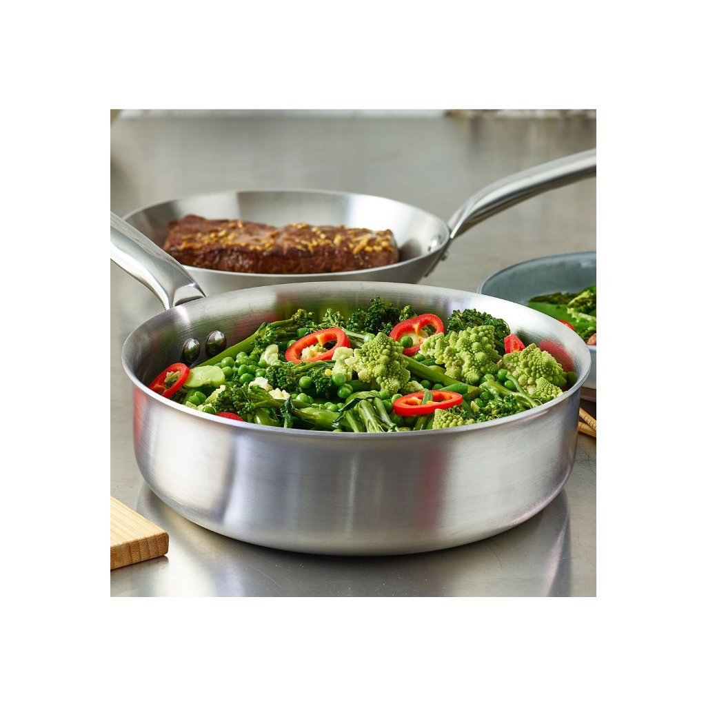 Sirge pann Alchimy kollektsioonist de Buyer vastab professionaalsete ja amatöörkokkade nõuetele igapäevaseks toiduvalmistamiseks. Ühtlane temperatuuri jaotumine on tagatud panni korpuse kolmekihilise koostise abil ja see pakub täielikku kontrolli isegi kõige keerukama toiduvalmistamise üle. Alchima toidunõud sobivad tervislikuks toiduvalmistamiseks. See on vastupidav, seda on lihtne puhastada ja selle disain aitab vähendada energiatarbimist.