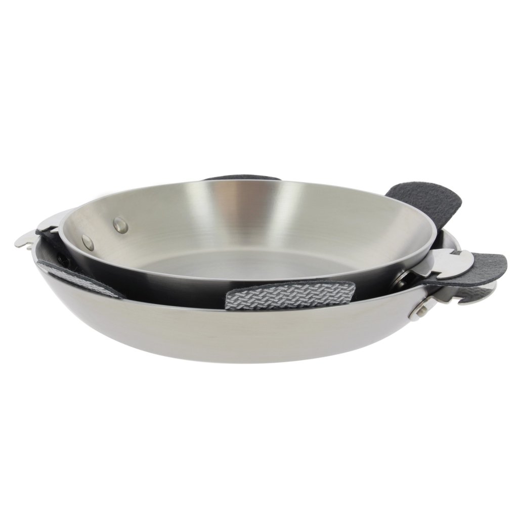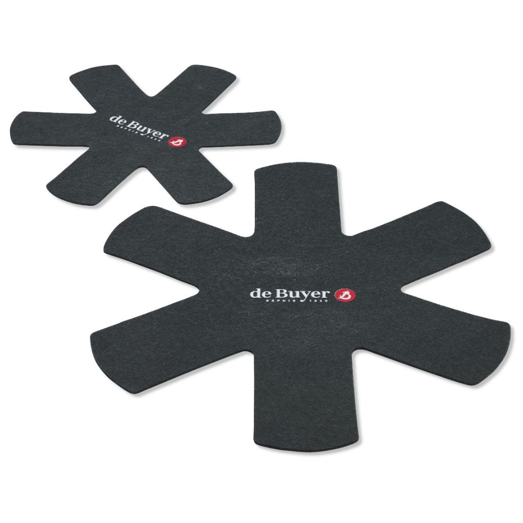 - Kahest kaitsekihist koosnev komplekt de Buyer on mõeldud pannide ja pottide ohutuks hoiustamiseks ilma pinna kriimustamise riskita.
