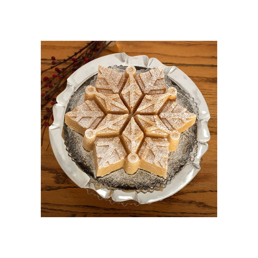 Ameerika brändi Nordic Ware hõbedane küpsetusvorm Frozen Snowflake Bundt® kollektsioonist Holiday on valmistatud kvaliteetsest, tahkest alumiiniumist, millel on mittekleepuv kate. Biskviit- või kookoskook koos sooja kohviga soojendab teie keha ja hinge mitte ainult jõulude ajal, vaid ka paljudel muudel erilistel puhkudel. Tänu geomeetrilisele kujule saab kooki hõlpsasti lõigata 6 või 12 ühesuguseks tükiks.