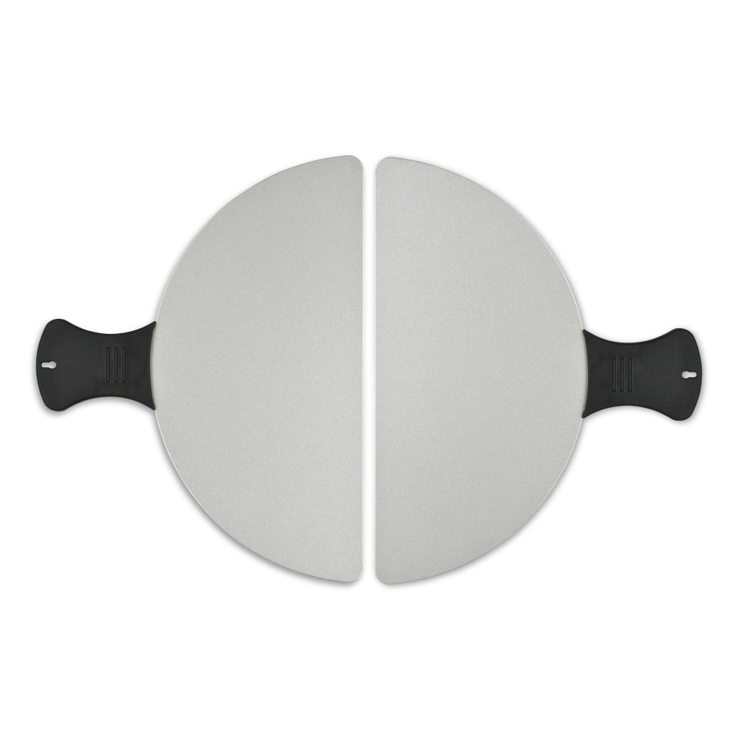 - komplektis on kaks 28 cm läbimõõduga alumiiniumist labidat, mis hõlbustavad taina ja valmis roogade käsitsemist