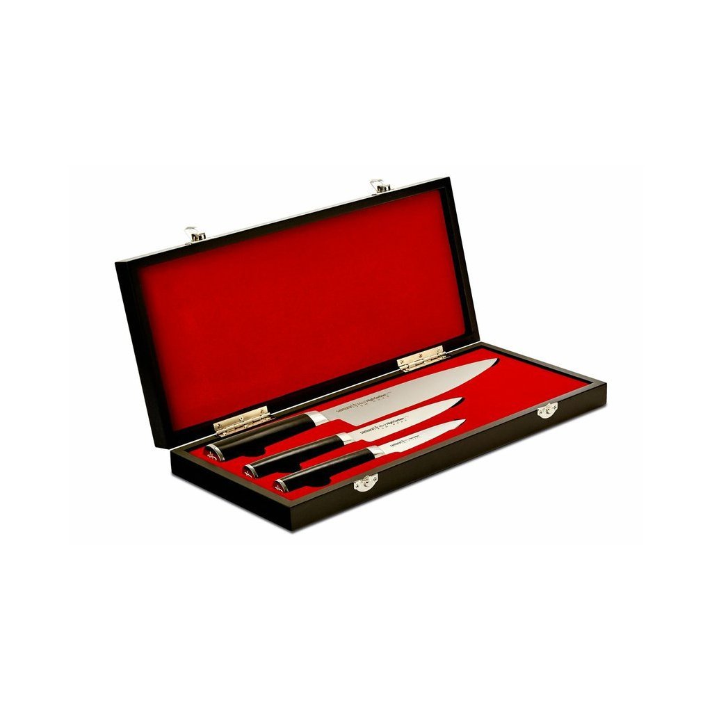 See komplekt sisaldab traditsiooniliselt kõige kaasaegsemaid ja populaarsemaid toiduvalmistamise noad - puu- ja köögiviljanuga, universaalnuga ja Euroopa kokanuga. Need noad sobivad peaaegu kõigi toidutüüpide töötlemiseks. Koorige köögiviljad, eemaldage pindmised defektid ja südamikud. Kasutage nuga, et lõigata koostisosi salati jaoks, valmistada võileiba või tükeldada koostisosi supi jaoks. Euroopa kokanuga saate lõigata kalapead või viilutada liha, peenestada kapsast, tükeldada köögivilju salatiks või lõigata kooki. Mo-V seeria on valmistatud AUS-8 terasest. Igaüks, kes seda nuga omab, saab uhke omanikuks. Suurepärane teritamine muudab toiduvalmistamise nauditavaks.See nutikas komplekt muutub praktilisest kingitusest kohe suurejooneliseks üllatuseks. Pakitud ilusasse ümbrikusse.