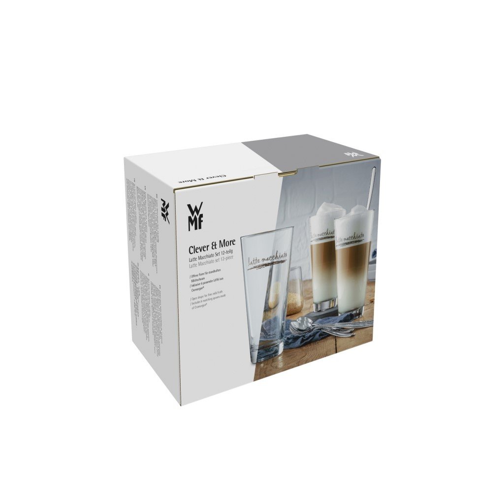 Komplekt on mõeldud spetsiaalselt seda tüüpi kohvi valmistamiseks, kuid seda saab kindlasti kasutada ka muude kuumade ja külmade jookide valmistamiseks. Klaasid on valmistatud kvaliteetsest klaasist, lusikad unikaalsest Cromargan® roostevabast terasest, mis on hügieeniline, korrosiooni-, lõhna- ja maitsekindel. Saksa brändi WMF nutikate nõude Clever & More sarja moodsa disainiga nõud sobivad nõudepesumasinasse.