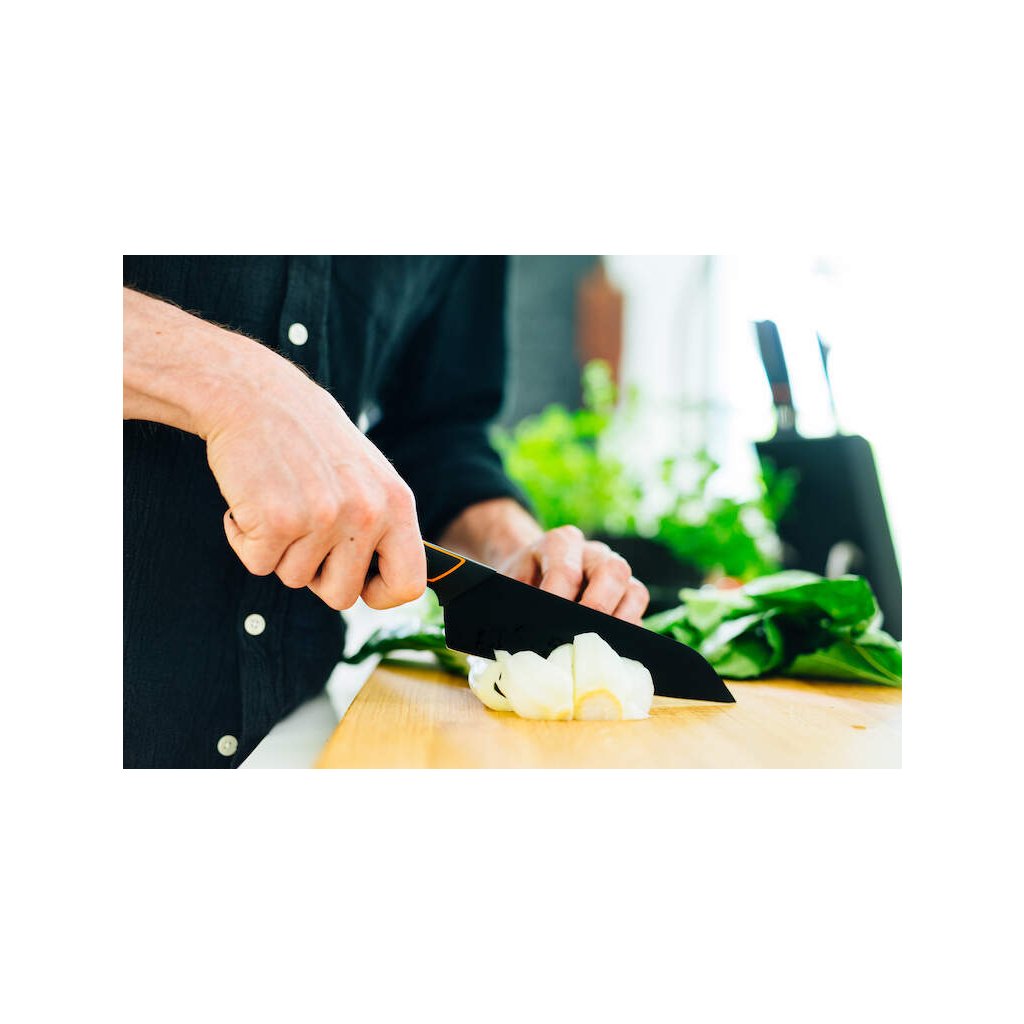 Ergonoomilise käepideme ja tera sujuv üleminek võimaldab kasutada erinevaid lõikamistehnikaid ja tagab erakordselt lihtsa käsitsemise. Musta värvi kleepumisvastane terakate ei anna nugadele mitte ainult atraktiivset välimust, vaid on ka väga funktsionaalne omadus, mis hõlbustab puhastamist, suurendab tera vastupidavust ja takistab toidu kleepumist viilutamise ajal.