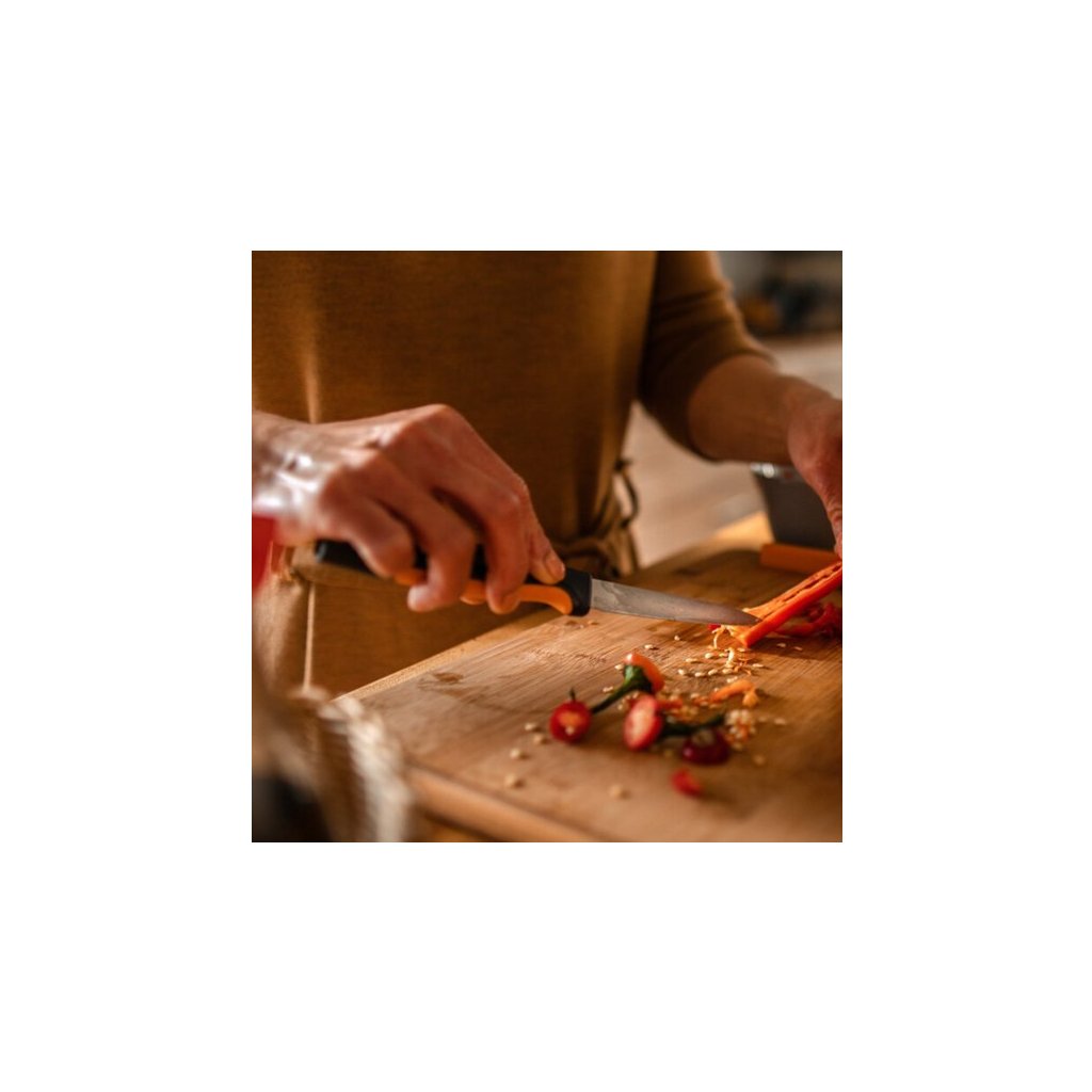 Kokkadele, kes hindavad elegantselt disainitud ja lihtsasti hooldatavaid köögitööriistu. Fiskars Functional Form™ koorimisnuga on mitmekülgne nuga, mis on hädavajalik igapäevaseks kasutamiseks. Selle tugevast Jaapani roostevabast terasest tera pakub suurepärast jõudlust. See on ideaalne puu- ja köögiviljade lõikamiseks ja viilutamiseks.