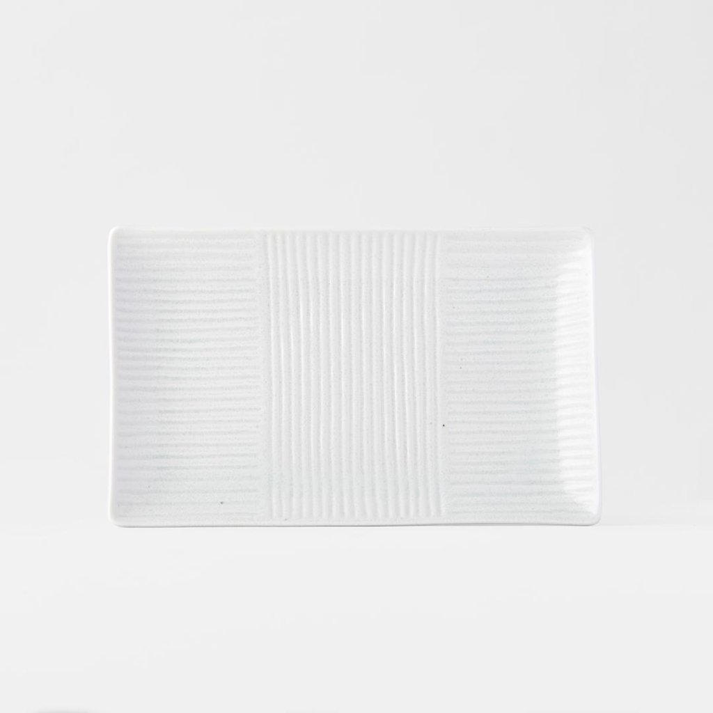 - Ristkülikukujuline taldrik LINES WHITE mõõtmetega 21 × 13 cm pakub puhast ja moodsat serveeringut sushile, sashimile või väikestele tapastele, mis tänu oma lihtsusele näevad välja korralikud ja elegantsed.