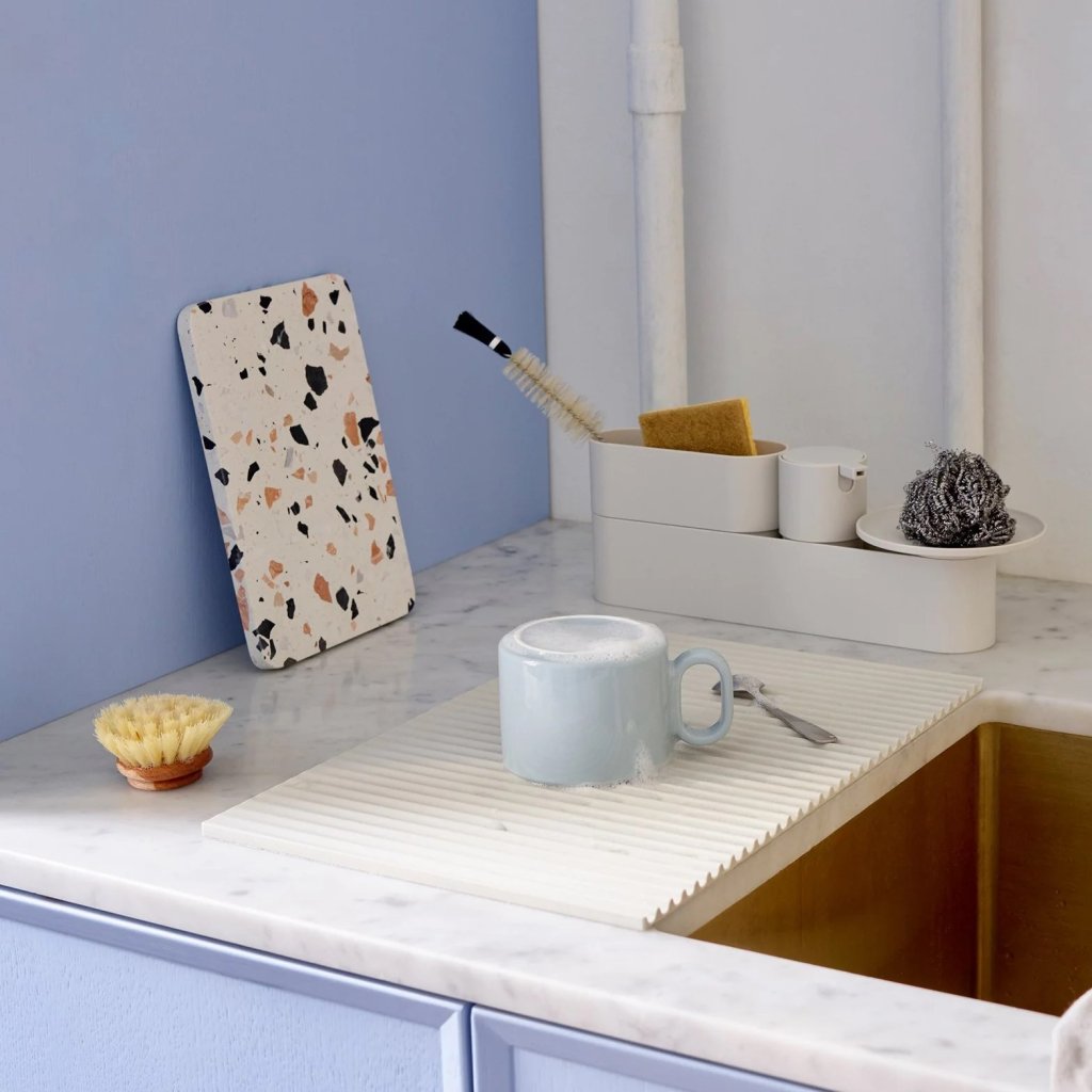 - valmistatud terrazzomaterjalist, mis annab igale tükile tänu värvilistele detailidele ainulaadse ja elava välimuse