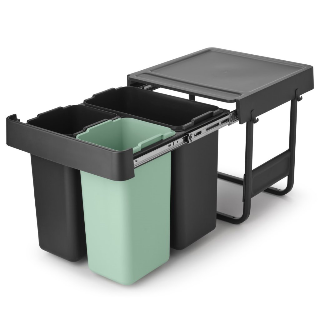 Sisseehitatud prügikast SORT & GO 2x 10 l + 1x 20 l, tumehall / nefriithall, plast, Brabantia