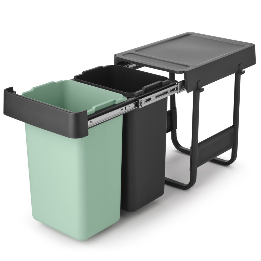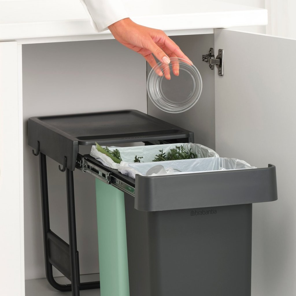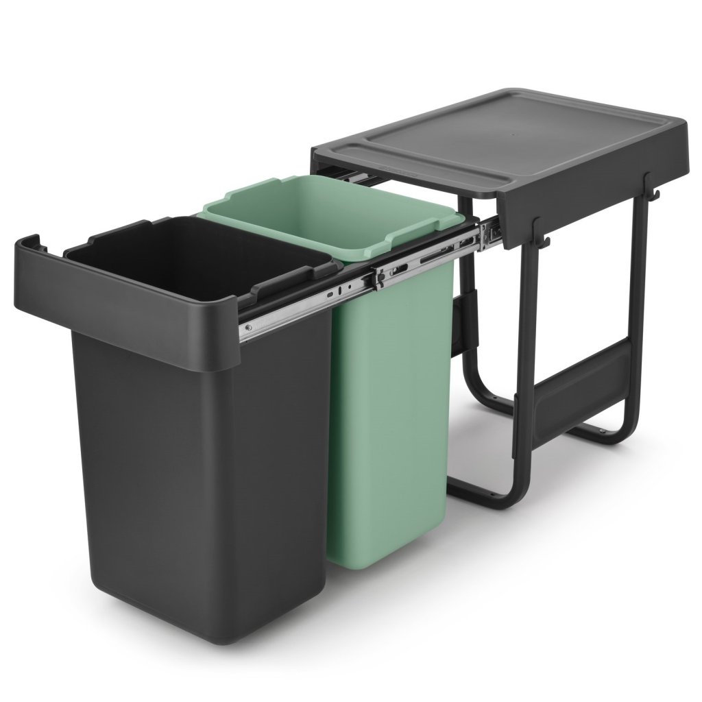 Sisseehitatud prügikast SORT & GO 2x 15 l, tumehall / nefriithall, plast, Brabantia