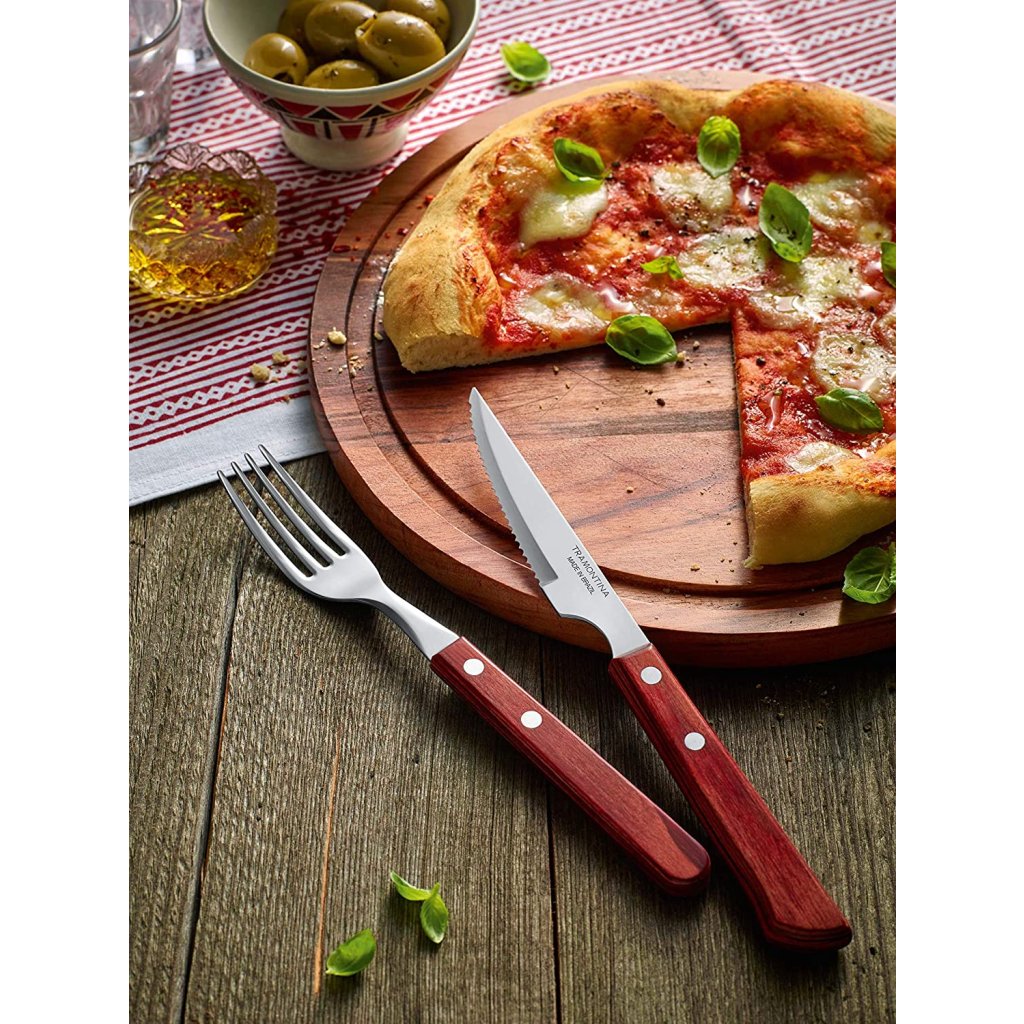 Mida rohkem sõpru kutsute sünnipäevale või muule grillipeole, seda ilusam saab üritus olema. Samal ajal, kui mahlakas liha grillitakse ja levitab oma vastupandamatut aroomi, on palju aega meeldivateks vestlusteks heade sõpradega. Et süüa oma lihalõike stiilselt, pakub TRAMONTINA kvaliteetset 12-osalist prae- ja pitsakomplekti. Noad ja kahvlid on valmistatud roostevabast terasest AISI 420 (DIN 1.4028) ja on ideaalselt tasakaalustatud. Käepidemed on valmistatud POLYWOODist - mitu kihti männipuidust on immutatud vaiguga, pressitud kokku, lõigatud ja seejärel lihvitud, et luua äärmiselt vastupidav ja kuumakindel vars. Sellest annab tunnistust ka asjaolu, et söögiriistad, mis sobivad suurepäraselt ka pitsa valmistamiseks, on nõudepesumasinas pestavad.