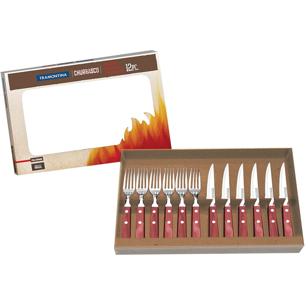 Söögiriistad steigi jaoks CHURRASCO, 12-osaline komplekt, punane, Tramontina