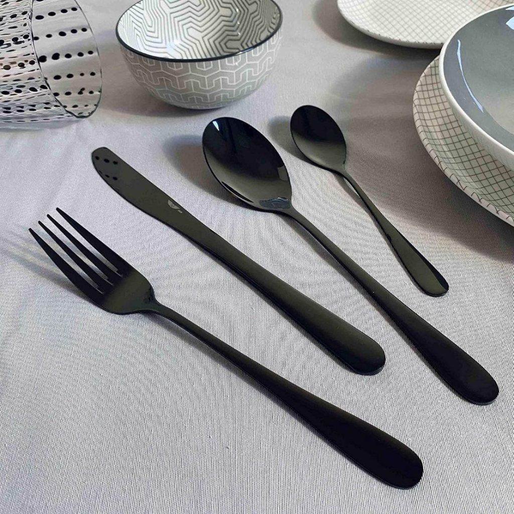 - söögiriistade komplekt PRINCESS CARBON pakub oma elegantse musta disaini tõttu silmatorkavat visuaalset kontrasti.