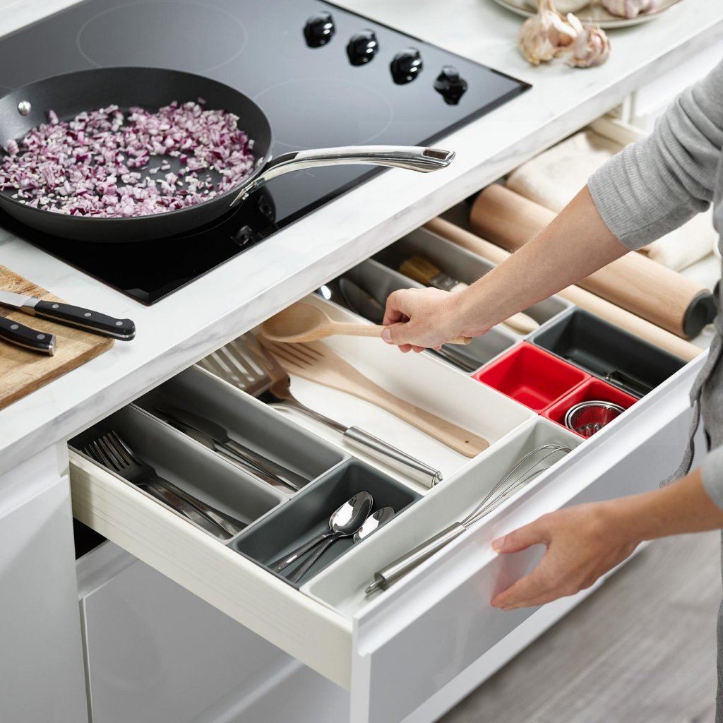 - Moodulsüsteem võimaldab optimaalselt täita ka ebatavalisi või laiemaid sahtleid ja kohandada paigutust vastavalt praegustele vajadustele.