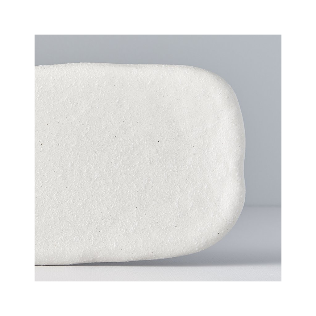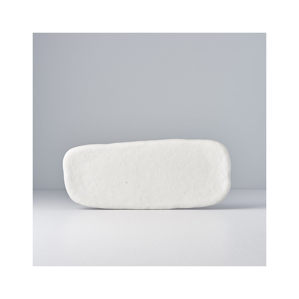 Selles pakendis on ristkülikukujuline taldrik/serviiritaldrik kollektsioonist Shell White Slab. Valge plaat on ebakorrapärase kujuga ja abrasiivse pinnaga.