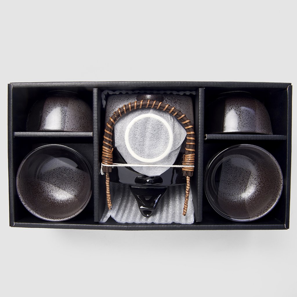 Teekomplekti kuulub 1 teekann mahutavusega 750 ml ja 4 teekaussi mahutavusega 180 ml. Komplekt on musta-halli värvi. Komplekt on mustas karbis ja sobib seetõttu kingituseks.